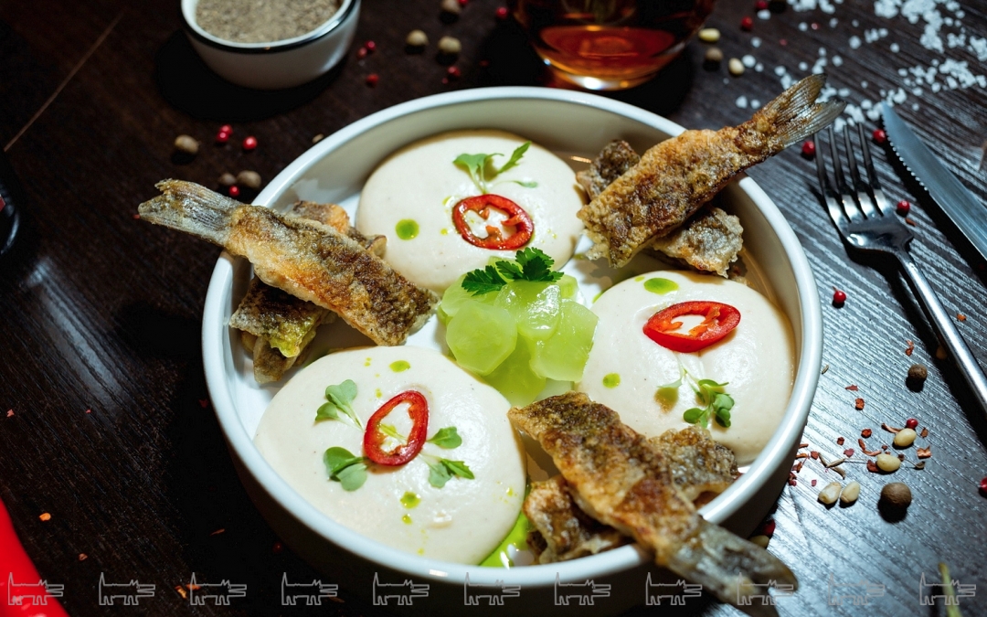 Пивная гастрономия в виде легких рыбных блюд и морепродуктов, то есть отличная от классического трио сосисок, ребрышек и рульки. Флагманский раздел меню — с раками: всего семнадцать рецептов их приготовления. За кухню проекта отвечает Антон Широков: повар начал карьеру в «Кококо» и московском «Фаренгейте».