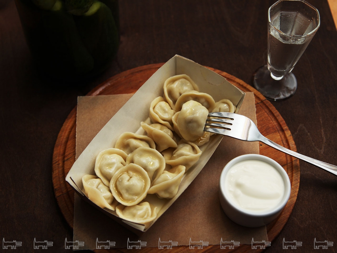 Лидер по посещаемости на фудкорте Новой Голландии в ландшафте прогрессивной урбанистики отвечает за вечные ценности: стопку хреновухи и укроповки с малосольным огурцом или самодельными пельменями.